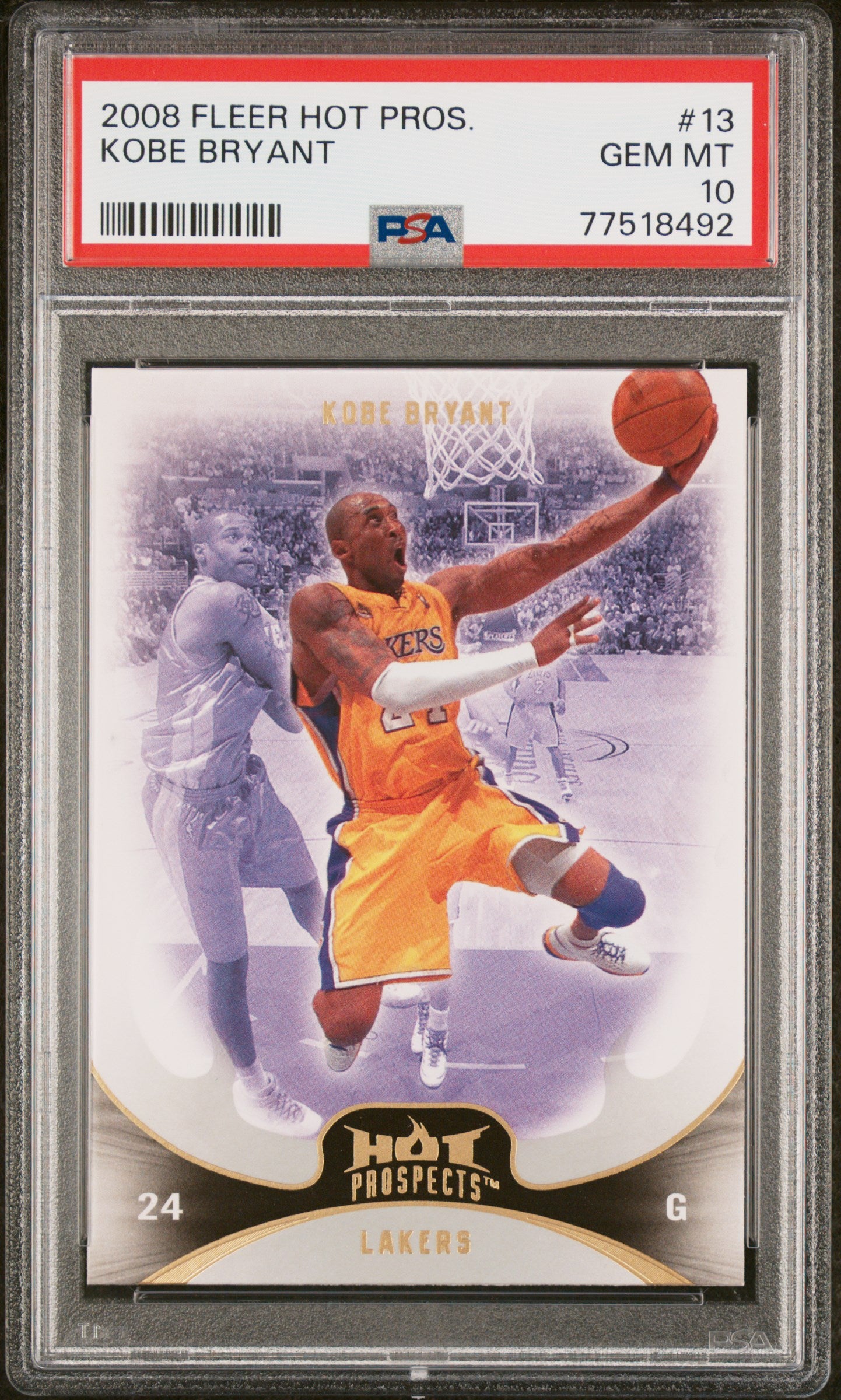 This Kobe Bryant 2008 Fleer Hot Prospects Basketball Card #13 captures one of the greatest players of all time in a striking modern design. From the 2008 Fleer Hot Prospects set this card showcases Bryant’s intensity and legacy as a five-time NBA champion. Graded PSA 10 it is a gem mint example with vivid color clean edges and top-tier presentation—a key collectible for fans of the Mamba mentality.