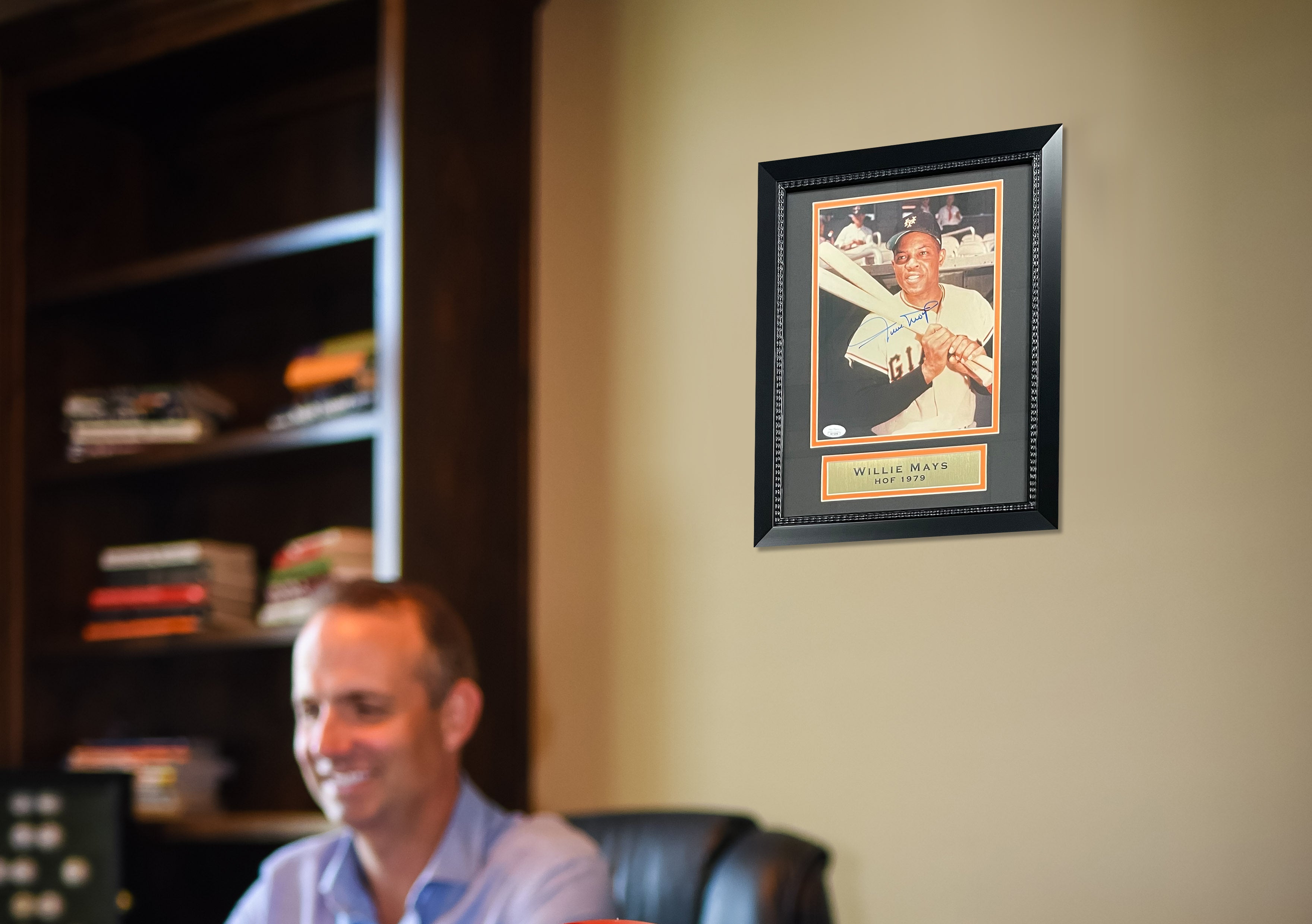 Willie Mays has autographed this 8x10 photo of him. Just an iconic image. Autograph is authenticated by James Spence Authentication (JSA) and comes with their unique hologram # and COA verified on their site. Frame measures 13x16 and comes ready to hang. Receive exact item shown.