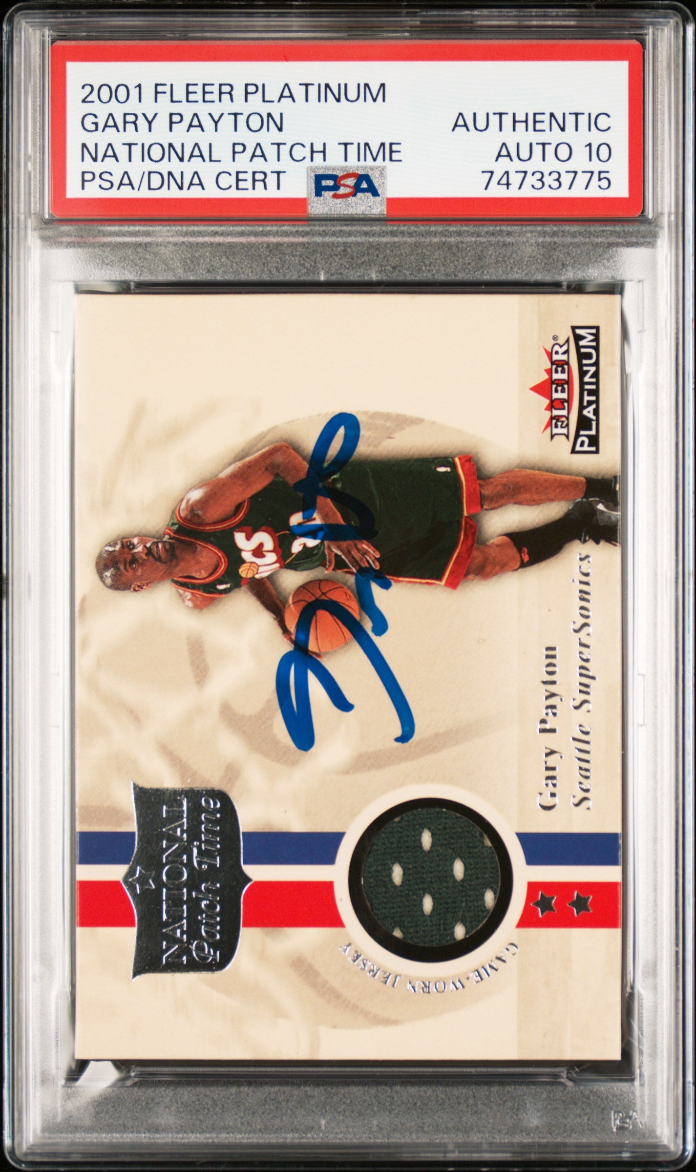 Gary Payton 2001 Fleer Platinum National Game Utilisé Patch Carte Signée Auto PSA 10