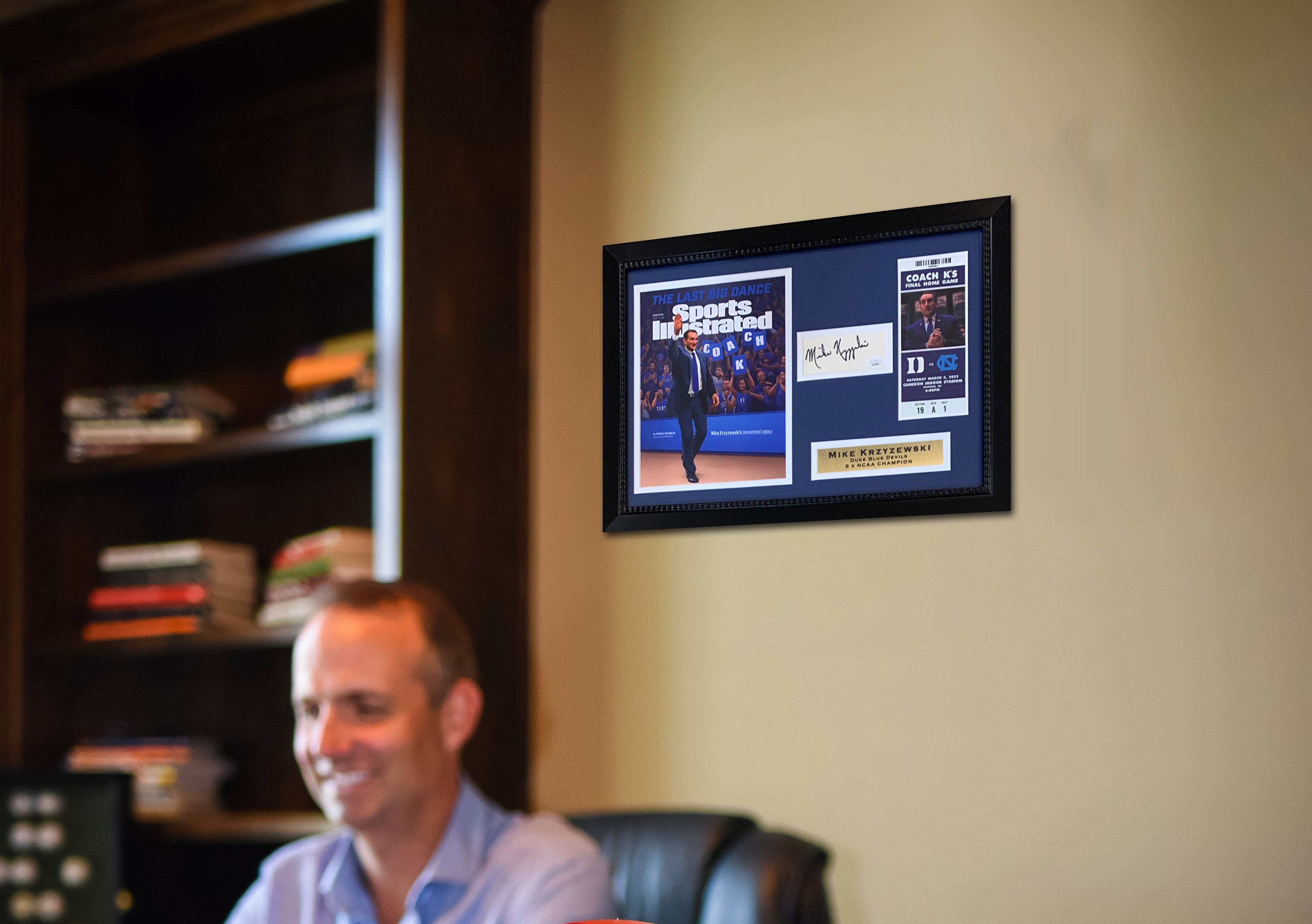 Mike Krzyzewski はこの 14x20 ディスプレイにサインを入れています。ジェームス・スペンス認証 (JSA) によって認証されたサイン入りの本のページ、彼の最後の SI 表紙の 8x10 写真、およびキャメロン・インドア・スタジアムでの最後のホームゲームのレプリカチケットが付属します。フレームのサイズは14x20で、すぐに掛けられる状態でお届けします。