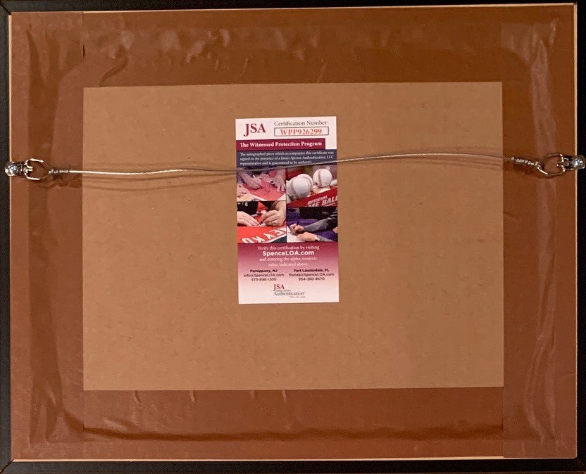2008年のタイトルゲーム対メンフィスで全米選手権同点弾を放った元カンザス・ジェイホーク。マリオは2013年にカンザス大で背番号15番を永久欠番にされた。史上最高のジェイホークスの一人。彼はまた、2つのタイトルを獲得しました。チャーマーズが撮った有名なショットの 8x10 の写真。これはカンザスバスケットボールの収集価値のある画像です。シルバーのサイン入り。マリオも08 CHAMPSを書きました。すぐに掛けられる状態でお届けします。プレート付きの画像と同じように額装されています。銘板には「マリオ・チャルマーズ カンザス大学「ザ・ショット」2008 年全米チャンピオン」と書かれています。黒いフレームのサイズは13x16です。サインは、署名に立ち会ったジェームス・スペンス認証 (JSA) によって認証されます。独自のステッカー # が付属しており、商品と署名された日付が記載された Web サイトで確認されます。同じステッカー # の COA も付属しています。