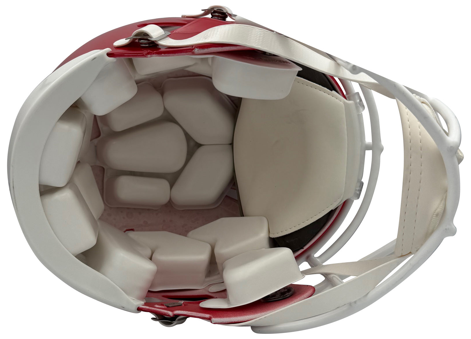 This full size authentic football helmet has been hand signed by Chris Jones defensive powerhouse for the Kansas City Chiefs. Known for his dominance on the defensive line Jones has been a key leader in the Chiefs championship success. The helmet features the official Kansas City Chiefs design with authentic detailing and includes a Beckett Certificate of Authenticity verifying the autograph. A premium collectible honoring one of the NFLs most impactful defensive players.