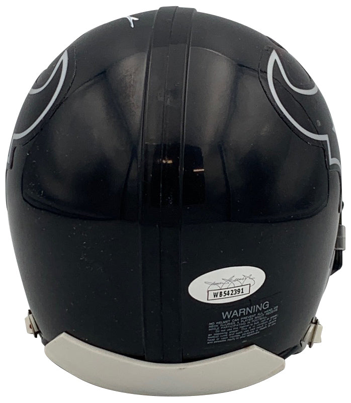 Add a piece of NFL history to your collection with this Andre Johnson Autographed Houston Texans Mini Football Helmet featuring an authentic signature from the legendary wide receiver. This mini helmet is a must-have for any Houston Texans fan or sports memorabilia collector. The autograph is authenticated by JSA (James Spence Authentication) the world?ÇÖs leading autograph authenticator and comes with a unique sticker # that can be verified on their website along with a matching certificate of authenticity. This collectible mini helmet is a perfect way to celebrate Andre Johnson's incredible career and is an excellent addition to any memorabilia collection.