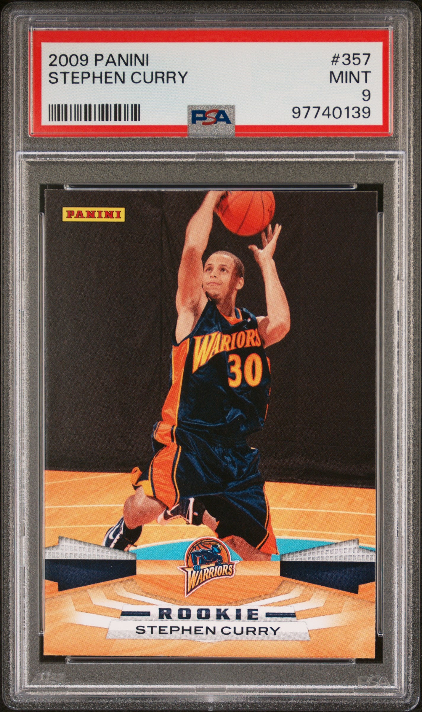 The Stephen Curry 2009 Panini Basketball Rookie Card RC #357 graded PSA 9 is a premium collectible that highlights the early career of one of the most influential players in NBA history. As a rookie card of the all-time 3-point leader and four-time NBA champion this graded card is a prized addition for any basketball fan or collector. With a PSA 9 grade it is in excellent condition ensuring its value and appeal. This card is a must-have for Curry fans and sports memorabilia collectors alike celebrating the rise of a basketball icon.
